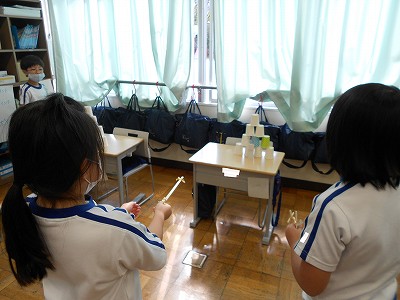 今日の生活科の時間は、2年生の「おもちゃランド」で遊ばせてもらいました。2年生の学級代表さんが1年生の教室に来てくれて【はじめの言葉】を聞きました。