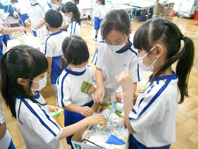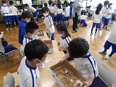 また、遊んだ後には手作りの景品をもらい、1年生のみんなは大喜びでした。