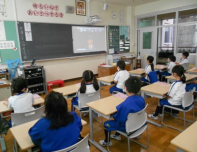 英語ビートの歌をBGMなしで歌っているところです。大したものです。何人かの子ども達が言います。「私達の歌っている様子(映像)を、NHKに送って!」
