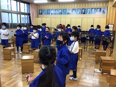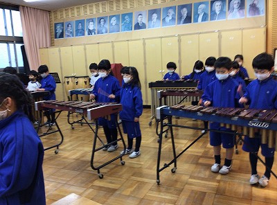 教室では、鍵ハモの立奏にもチャレンジし、「♪バナナのくに」の仕上げを行いました。