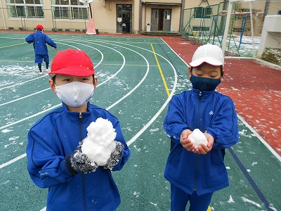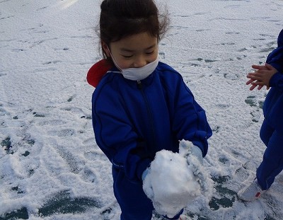 雪のため、マラソンの予定を変えて、少しの時間、みんなで雪遊びをしました。