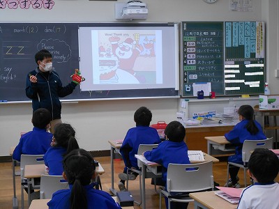 授業の終わりは、クリスマスの絵本の読み聞かせです。サンタさんが登場して、一緒にケーキを食べるというかわいいお話でした。