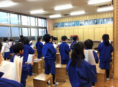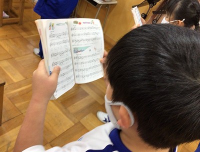 「犬は喜び庭かけ回り ねこはこたつで丸くなる」のところの対比が、1年キッズに好評で、歌詞の意味を考えたときには、“くすっ”と笑う様子がみられました。