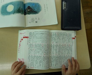 今日は場面を分けた後、国語辞典を使って「言葉の意味調べ」をしました。
