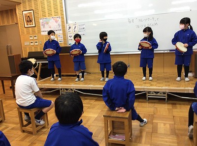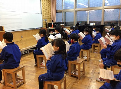 聖歌を歌うことから始まりました。やさしい声で歌うことを大切に、大変集中して取り組んでいます。