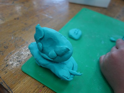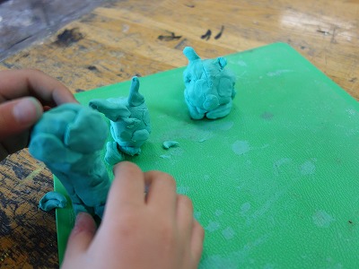 後半からは粘土を使った学習をしました。題材名の通り「いっしょにおさんぽ」しているところをつくります。