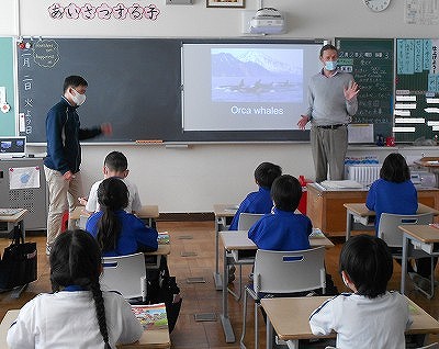 その後は、本校のグローバル月間に合わせて、ポール先生から母国のカナダについて、お話を聞きました。カナダの場所や、暮らしについて写真や映像を見ながら学びました。