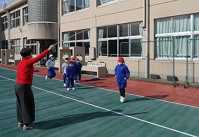 教頭先生が縄を回してくださり、楽しく跳んでいます。