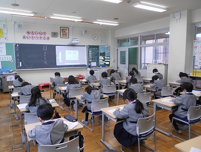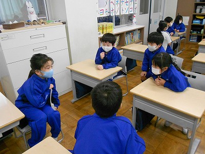 後半は、「6年生ありがとうの会」に向けて、話し合いました。先週の学級活動の時間に出た意見をもとに「1年生と6年生の思い出クイズ」を考えています。