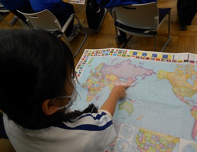 今日は「韓国料理」でした。4校時の終わりに、世界地図を広げて「大韓民国」の場所や国旗を調べました。