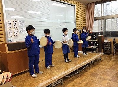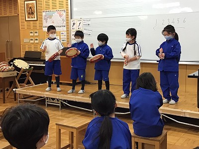 これまで、手で打っていた重ね打ちを、いよいよ楽器を使って…となると、緊張感が増したようです。短い時間でチームの練習を行い、発表を!と計画していましたが、リズムがずれて苦戦する様子がみられました。