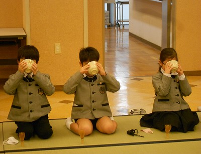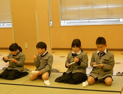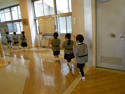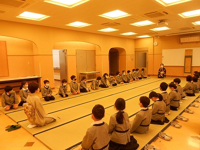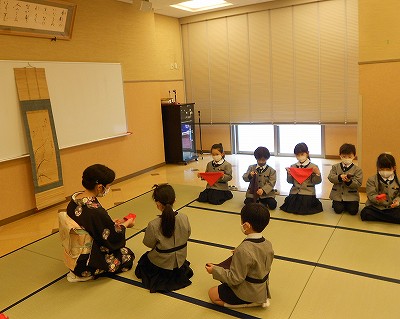 教室を出るところから、礼法の学習が始まっているという意識で、みんな落ち着いて和の部屋へ向かいます。