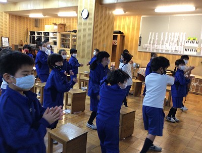 もうすっかり文教キッズの姿を見ることができました。「100点満点の校歌です!」と伝えると、笑顔がたくさん広がりました。その表情で歌う「♪花まつりのうた」です。すてきに歌えたことまちがいなし!です。