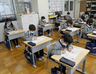 1年生最後のカラーテストです。問題文をよく読んで、集中して丁寧な字で書いています。
