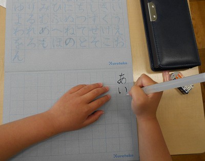 前回よりも水筆に慣れてきた様子で、「はね・止め・はらい」に気をつけて練習することができました。