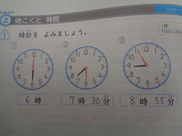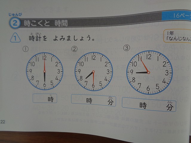 1年生の時に学習した「なんじなんぷん」の問題がありますね。