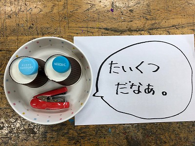 さて、今日の図工チャレンジは「この顔 なんていってる!?」にちょうせんです。