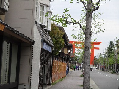橋のむこうに見えるのは、美術館(京都市京セラ美術館)です。