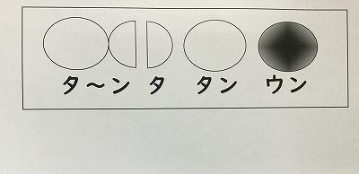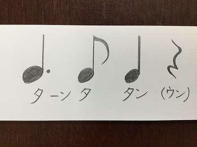 音ぷの記号(きごう)であらわすと、このような リズムに なります。