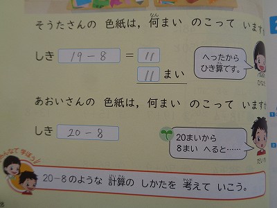 「つかうと へるから、ひき算になる」という わけも考えられたかな。