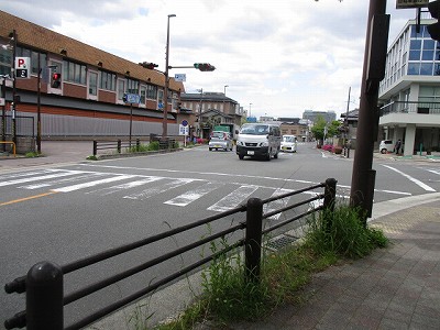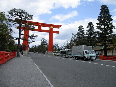 「仁王門通り」と「神宮道」の交差点です。横断歩道をわたり、さらに東へ、