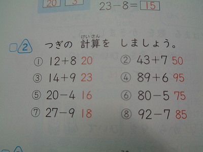 つぎは、算数科「たし算・ひき算」のまとめ学習です。