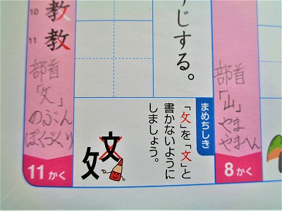 ・「教」のかん字の5画目、6画目の書き方に 気をつけましょう。