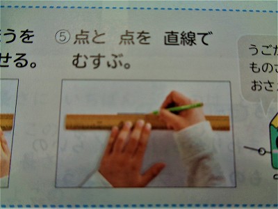 今日は、ものさしを つかって、直線を書く れんしゅうをします。