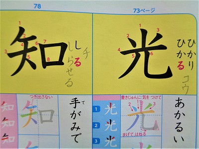 ・「光」の1画目から3画目までの書きじゅんに気をつけましょう。