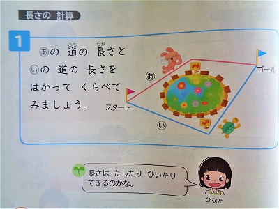 では、「あの道」と「いの道」の長さのちがいをたしかめましょう。