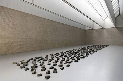 作家の方が広い部屋に石をならべた,こんな作品もあります。