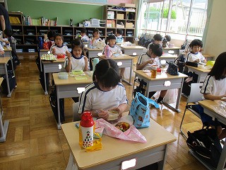 久しぶりの食前の言葉に懐かしさを感じる子どもたち。