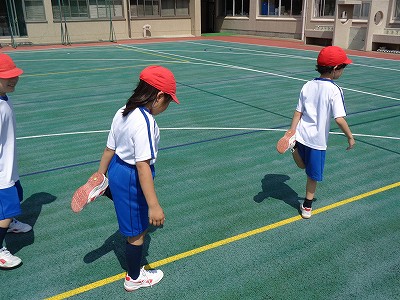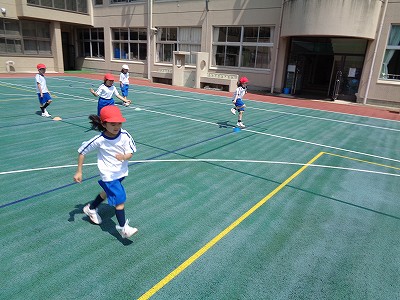 今日は、根っこマラソン・英語・体育・図工と活動が多い一日でした。