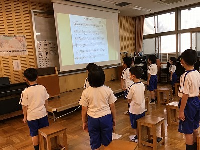 「♪心から心へ」の歌唱から2年生の音楽活動のスタートです。
