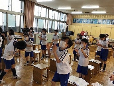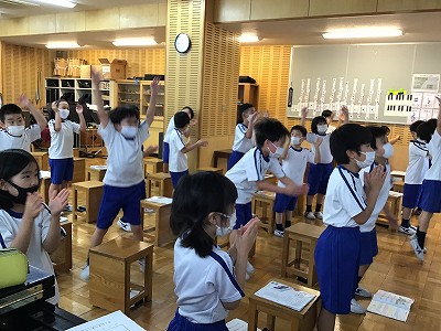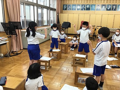 続いて、WEB学習で取り組んでいた「♪ぴょんぴょこロックンロール!」の前奏が聞こえると、歌もリズムものりのりで、表現していました。