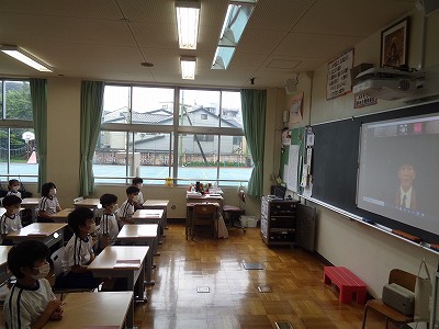 校長先生のお話にも、体を向けてしっかり聞いています。