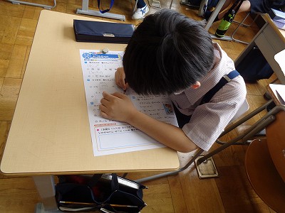 最初の文に数が書かれていないことで戸惑うことはありましたが、しっかり話を聞いて、練習問題に取り組んでいます。
