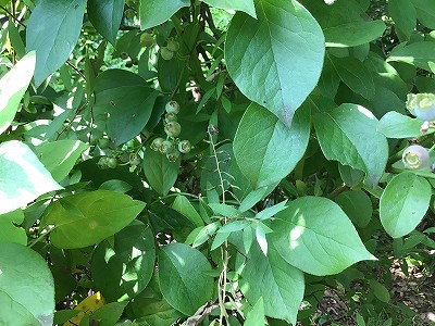 ビオトープでは、ブルーベリーの実の色が少し変わってきました。