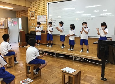 「♪夏だ!」では、交互に歌うところの担当をチェンジして、3番までを明るい声で歌いました。