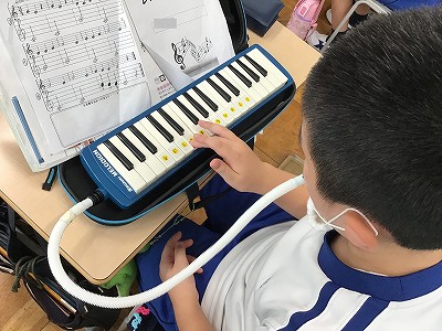 今学期から、マスクを外した「鍵盤ハーモニカ」の学習を進めていきます。