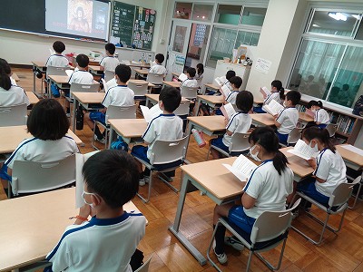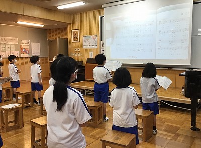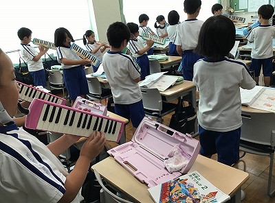 鍵盤ハーモニカで演奏する前には、「♪かっこう かっこう しずかに~」と、やさしい発声で歌う2年キッズの姿が見られました。いつもは、音楽室での歌唱なのですが、今日は、自分達の教室内。3拍子にのって、美しく響かせてくれました。