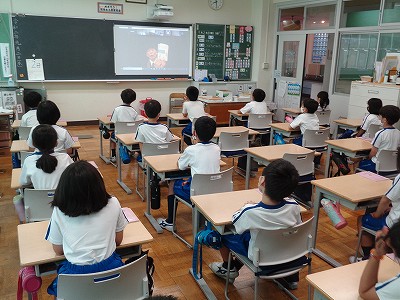お昼からは、読書タイムです。図書係さんが読み聞かせを行ってくれました。