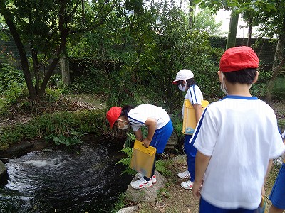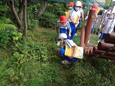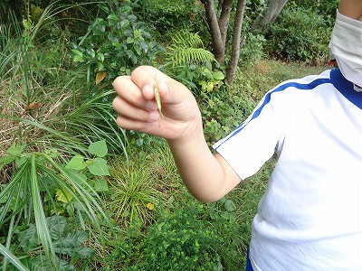 ビオトープでは、すぐにショウリョウバッタを見つけていました。池にはメダカがいます。今日も、ビオトープの中の生きものをたくさん見つけました。