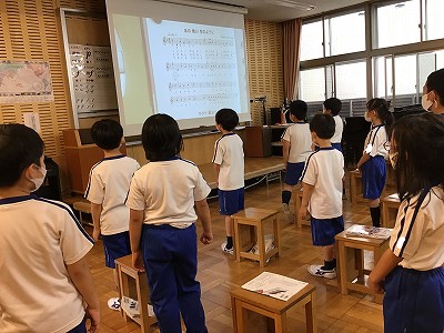 “秋の虫”たちがたくさん登場する歌ですが、みなさん、この歌に何種類の虫が歌われているか、ご存知ですか?正解は、2年キッズにお尋ねください。