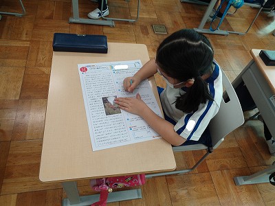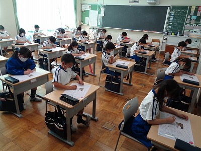 4校時は、国語「どうぶつ園のじゅうい」のテストをしました。