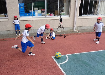 基本的なルールやゲームの流れは、少しずつ掴めてきている2年キッズ。チームで声を掛け合って、のびのびとプレーしている姿が印象的でした。