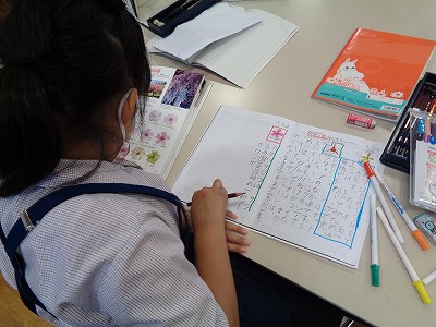 まずは、メモ書きしたものをもとにノート作りです。みんな意欲的に取り組んでいます。