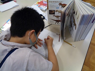2校時と6校時は、国語科「知りたいことの見つけ方」の学習です。昨日に引き続き、図書室で調べ学習に取り組みました。