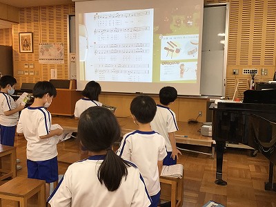 1学期の後半に練習していた歌なので、“久しぶり”な空気が流れましたが、3番までリズムに乗って歌唱できました。
