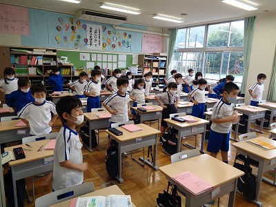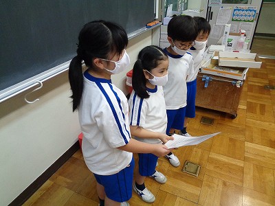 朝の会では、日直さんが「安全に過ごす一日にしよう」と話してくれました。